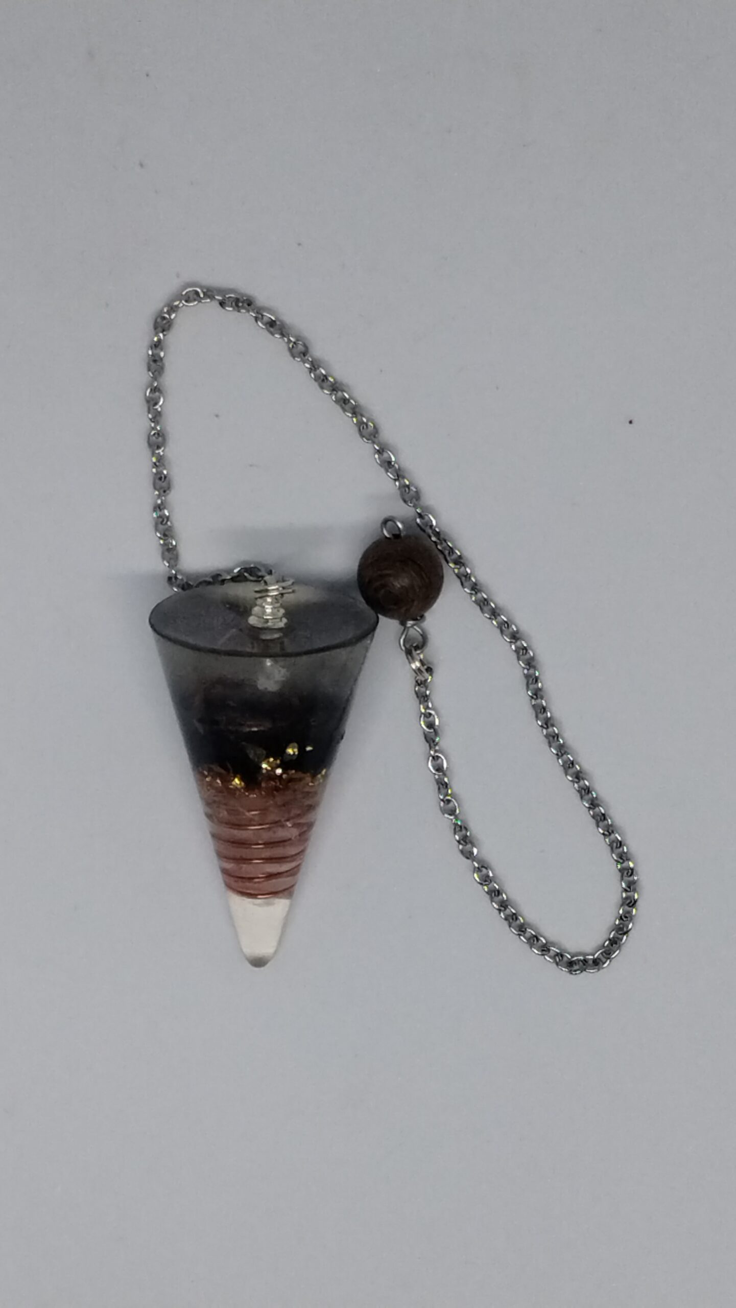 Pendule en Orgonite : Cristal de roche, Shungite.